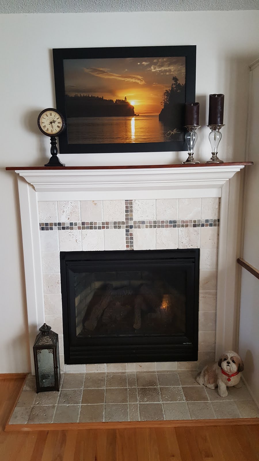 I couldn't get a shot of the entire room, but here's a picture of the fireplace before I started: